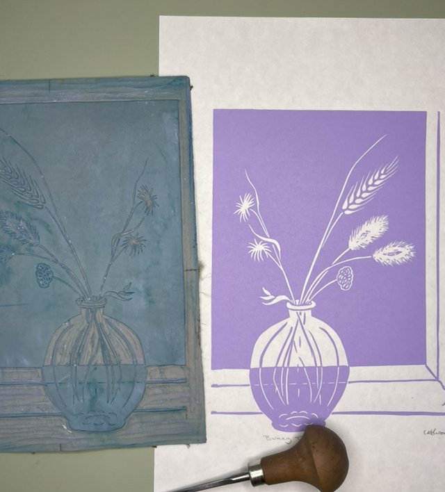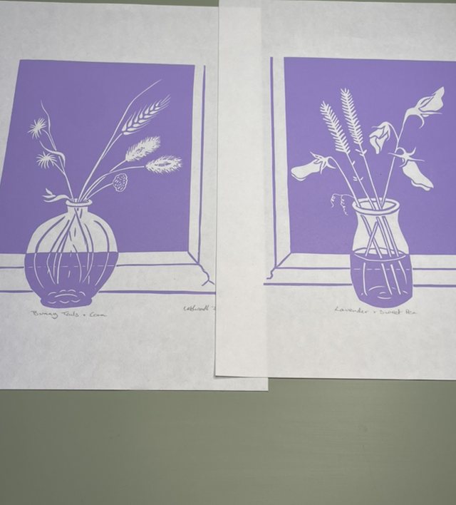 This print is one of a pair inspired by a little vase of flowers. This one depicts Bunny Tail grass and Corn and is printed in a lovely peach colour.
