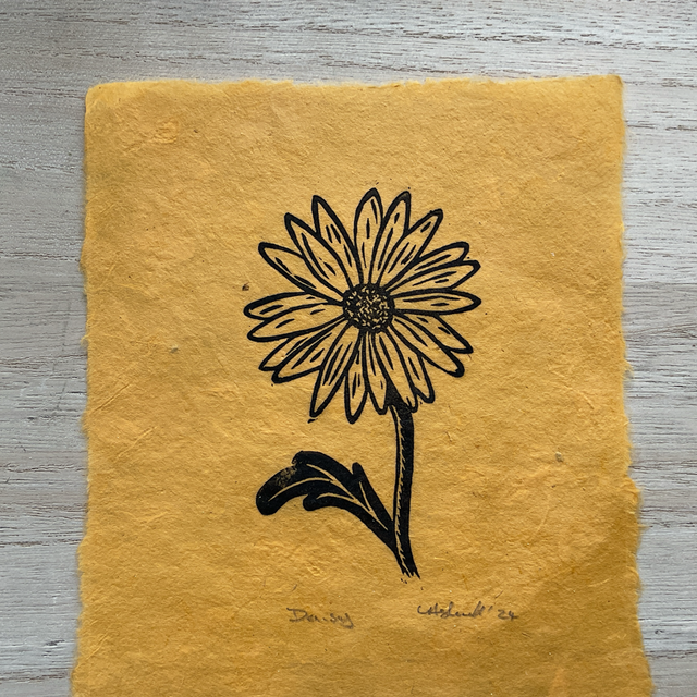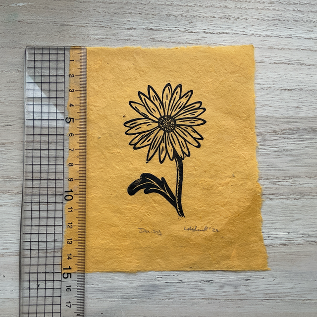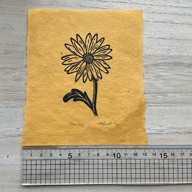 Daisy mini print on saffron Khandi paper
