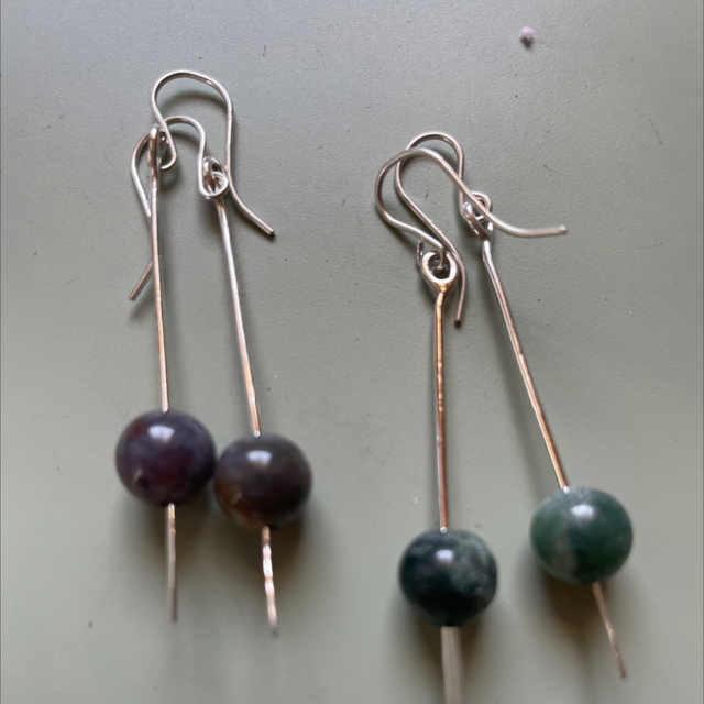 Long drop agate silver earrings