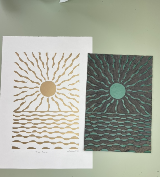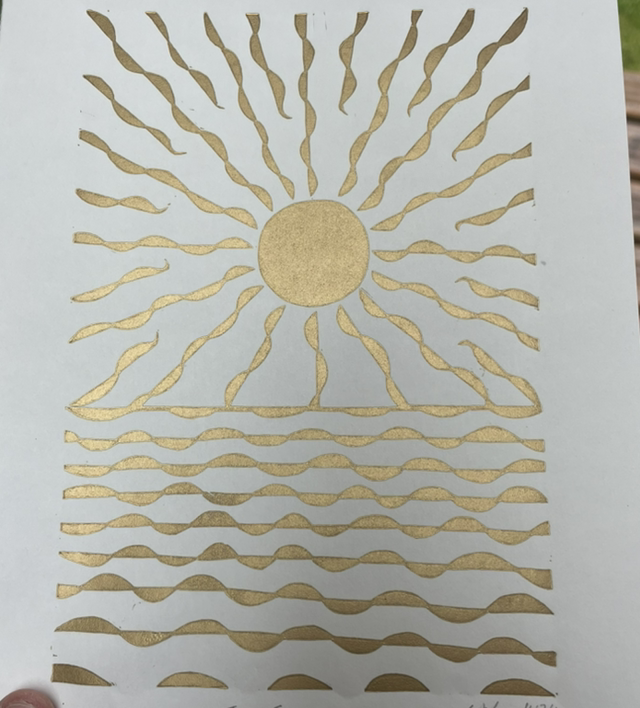 The Sun, Lino Print in .Gold